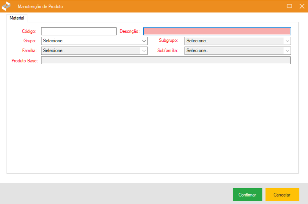 Nessa janela, o usuário pode inserir uma série de informações detalhadas sobre o material, como: