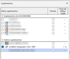 Após isso, basta selecionar para ativar o suplemento do eCUBUS, deverá trazer o painel de execução automaticamente no SolidWorks