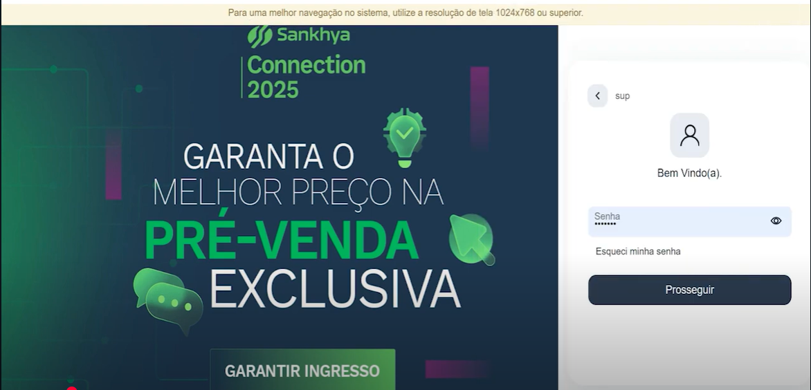 - Acesse o Sankhya Om com o login do usuário que tenha permissão para as Configurações Gateway.