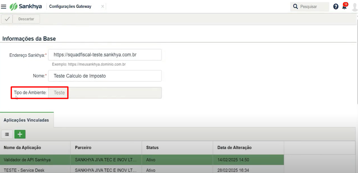 - Nessa tela, será possível verificar automaticamente o tipo de ambiente