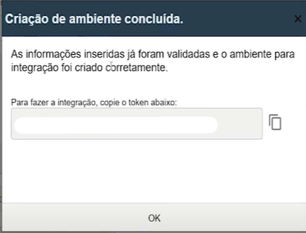- Salve as configurações para que o token de integração seja gerado e vinculado ao ambiente.