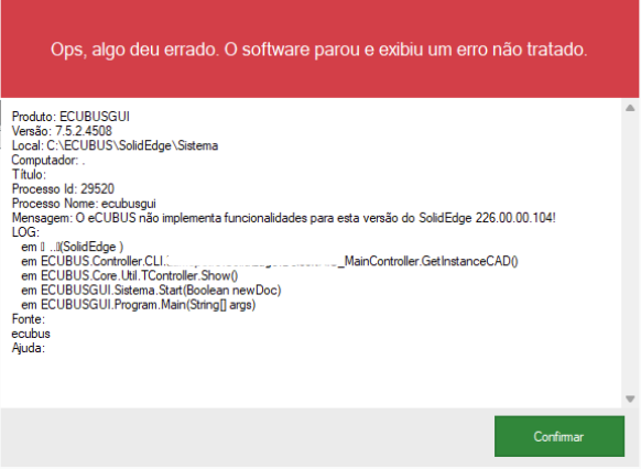 Mensagem de incompatibilidade do eCUBUS ao atualizar a versão do CAD