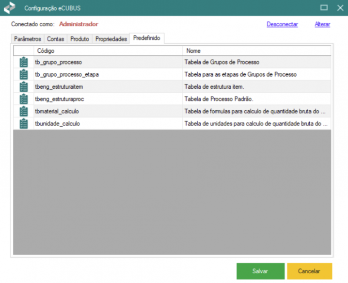 Todas as tabelas predefinidas podem ser exportadas e importadas via Excel pelo Suporte da Cubus, facilitando o processo de automação.