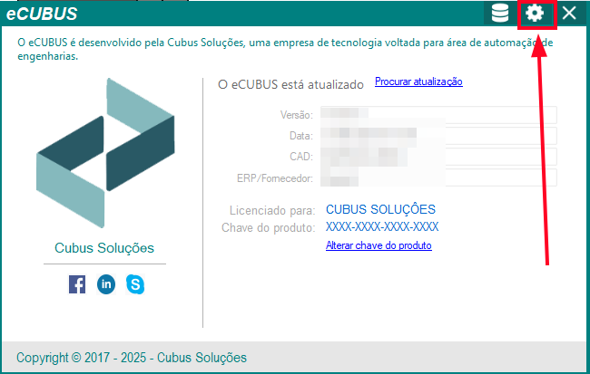 1- Abrir o aplicativo “Sobre" do integrador eCUBUS;
