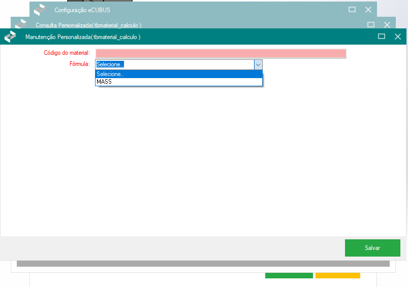 - tbmaterial_calculo: onde você vincula uma fórmula já criada na tbformulas a um código de material específico;